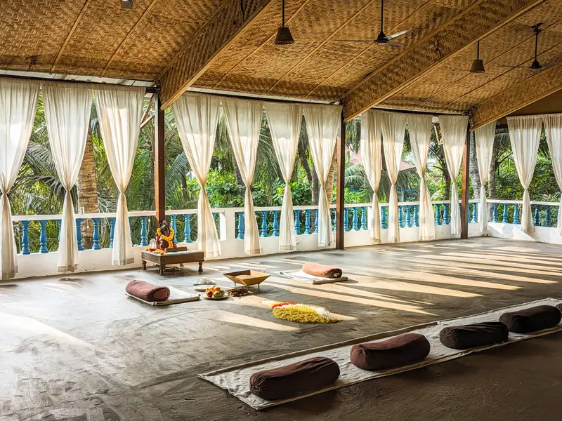 Location: Nalanda Retreat, Mandrem Beach, Goa, a serene beachfront sanctuary designed for yoga, healing, and community.